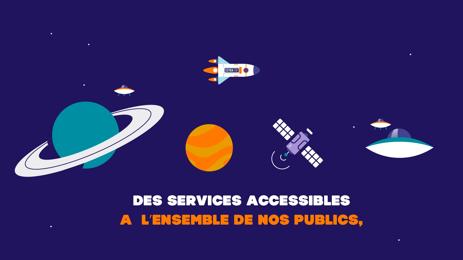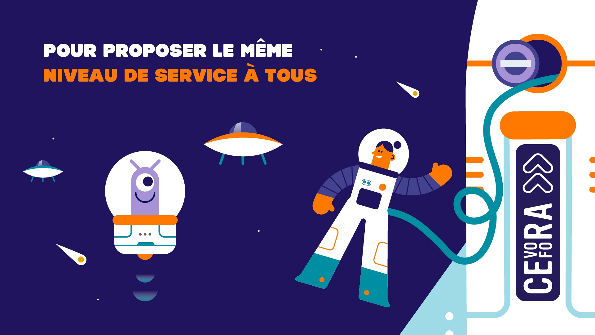This explainer video is illustrating Cefora’s values through a space-themed metaphor. The Cefora rocket, guided by a radar symbolizing its five core values, travels through space, meeting different characters (employees, beneficiaries, and diverse audiences) helping them develop their skills and inviting them on board.