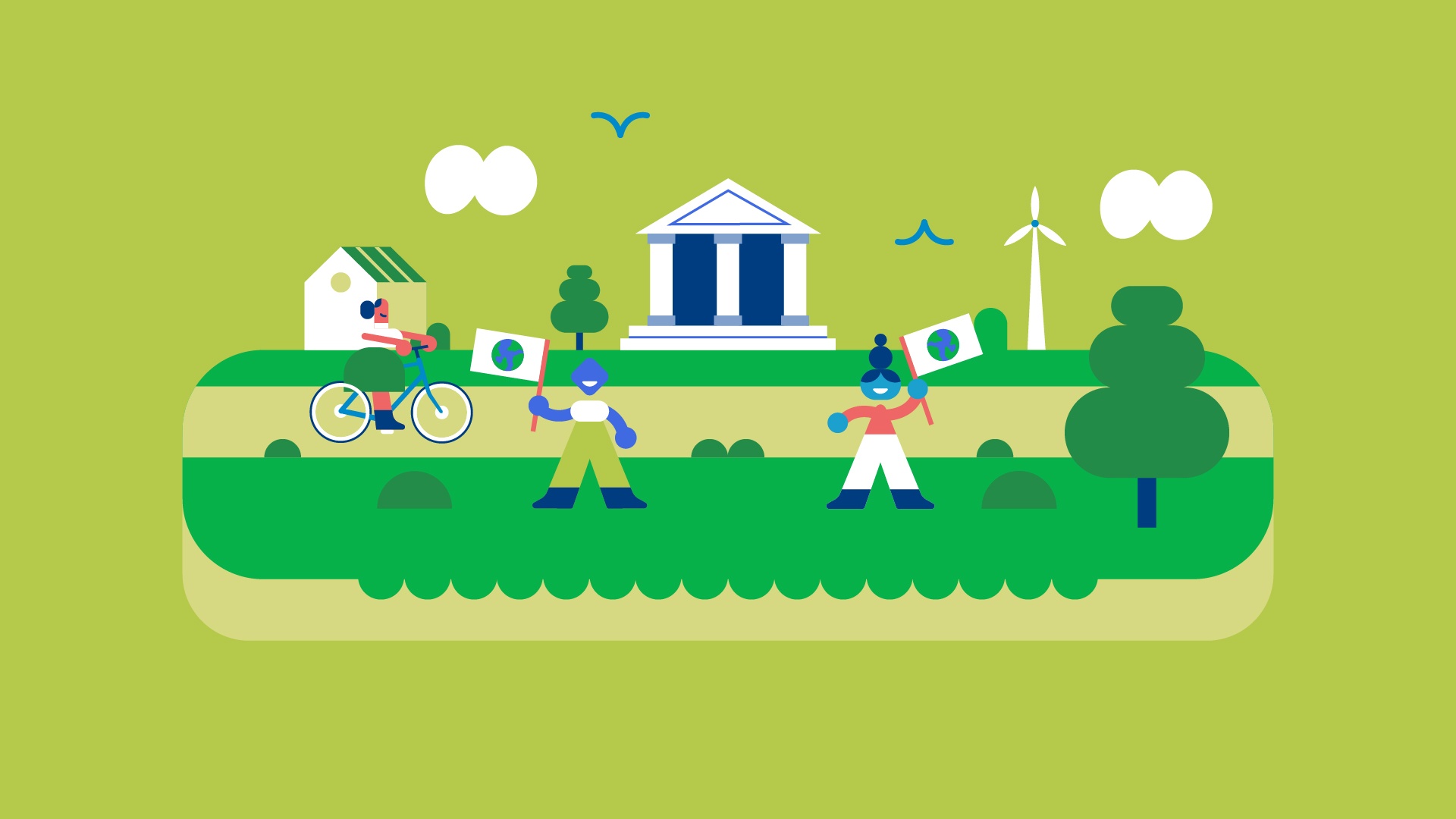 Illustration for short animated video for EEB (European Environmental Bureau) advocates for strong environmental policies across Europe to protect nature, fight pollution, and promote justice for all communities.